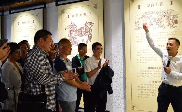 調(diào)研最后一站,大家來到位于九龍濕地畔的麗水魚躍1919文化產(chǎn)業(yè)園。在產(chǎn)業(yè)園,百年魚躍的第十代掌門人陳旭東從“勺海”之說引入,給大家講述了麗水老字號“魚躍”品牌的傳承與浴火重生的故事,還有麗水人耳熟能詳?shù)尼u油故事。
