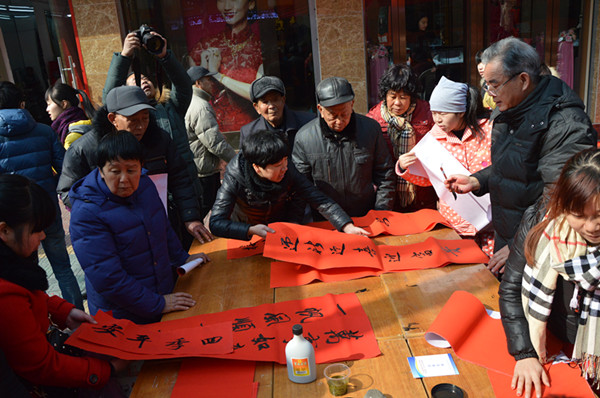 服務活動接近尾聲時,一幅“跟著共產黨,中國有希望!”的春聯吸引了眾人的目光,一位大媽急忙說這幅對聯一定要留給她,還不忘告訴一旁的孫女:“你現在吃得好、穿得好,還能上那么好的學校,可全是黨的功勞!”周圍的群眾也紛紛感嘆:“現在大家都有房有車,以前真是做夢也想不到的!”一幅對聯寫出了大家的心里話,服務活動雖然只有短短半天時間,但黨群一家親的氛圍卻留住了盎然春意,讓所有人心頭充滿了新年的期盼。