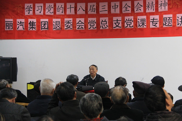 為把學習貫徹黨的十八屆三中全會精神引向深入, 11月28日麗汽集團離退委黨支部特邀請麗水黨校柯鑒清副教授給100余位黨員上了一堂以“學習十八屆三中全會精神”為主題的黨課,從中國的形勢、會議內容,行政體制改革和轉變政府職能等方面進行宣講,進一步深化了離退休黨員對全會精神的理解。