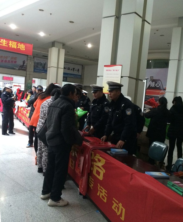 本次活動由麗水市公安局交警支隊、麗水市公路管理局、金麗溫高速、高速交警麗水支隊、麗水市道路運輸管理局、麗汽集團等單位參加,并在西站現場設立了春運服務點。活動現場熱鬧異常,咨詢的旅客也絡繹不絕,活動單位向廣大旅客們發放了《珍愛生命、安全出行、拒絕黑車》、《文明交通安全宣傳手冊》等交通安全書籍和宣傳冊頁,還為旅客們送上了年味十足的福字、對聯和使用性強的浙江省高速公路行車指南地圖作為新年小禮物,受到了廣大旅客的歡迎。
